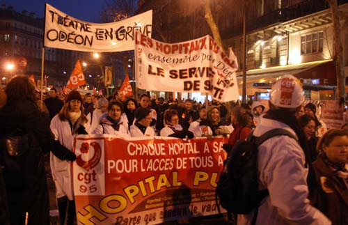 當?shù)貢r間1月29日,法國爆發(fā)了金融危機以來模第一次大規(guī)模的罷工活動,上百萬人走上街頭,抗議薩科齊政府在處理金融危機中的無能表現(xiàn)。(中國新聞網(wǎng))
