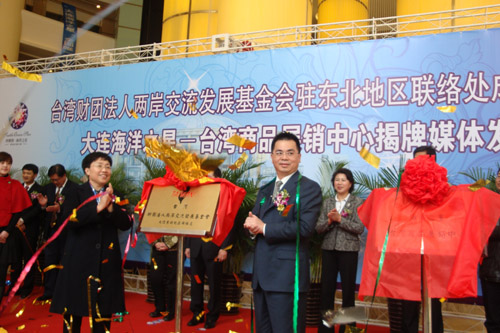 3月22日,臺(tái)灣財(cái)團(tuán)法人兩岸交流發(fā)展基金會(huì)駐東北聯(lián)絡(luò)處在大連經(jīng)濟(jì)技術(shù)開(kāi)發(fā)區(qū)南部海濱的大連海洋之星正式掛牌,大連海洋之星臺(tái)灣商品展銷(xiāo)中心也同時(shí)揭牌。據(jù)悉,大連海洋之星項(xiàng)目全部建成后,將成為臺(tái)灣商品走向東北地區(qū)的集散地與銷(xiāo)售平臺(tái),逐步形成臺(tái)灣產(chǎn)品在大陸銷(xiāo)售“南有廈門(mén),北有大連”的格局。圖為揭牌儀式現(xiàn)場(chǎng)。(攝影 朱潤(rùn)博 魏勤英)