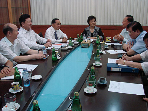 柬埔寨中國促統會代表正在聽取高華副會長報告。坐者中為張金鳳大使。(圖:柬埔寨星洲日報)