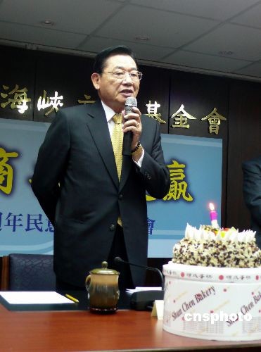 5月26日是;鶗(huì)董事長(zhǎng)江丙坤上任一周年的時(shí)間,有記者聯(lián)誼會(huì)代表為他送上慶生蛋糕。在蠟燭前,江丙坤許愿;鶗(huì)能夠按部就班、腳踏實(shí)地做好兩會(huì)協(xié)商工作。