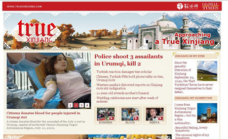 由英文環(huán)球網(wǎng)( www.globaltimes.cn)主辦的真實新疆網(wǎng)( www.truexinjiang.com)于2009年7月13日正式開通,這是目前中國國內(nèi)首 家全面介紹新疆的英文網(wǎng)站。