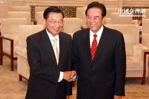 海協(xié)會會長陳云林28日下午在人民大會堂會見了臺灣;鶗麻L江丙坤率領(lǐng)的海基會新聞交流團一行。(中國臺灣網(wǎng) 田云鵬 攝)