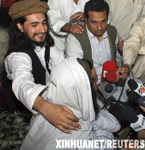 8月8日,據(jù)巴基斯坦當(dāng)?shù)仉娨暸_(tái)報(bào)道,巴基斯坦塔利班當(dāng)日在召開(kāi)會(huì)議選舉新領(lǐng)導(dǎo)人時(shí),巴基斯坦塔利班發(fā)言人哈基姆拉·馬哈蘇德和另一名重要頭目瓦利烏爾·拉赫曼分別領(lǐng)導(dǎo)的兩個(gè)武裝組織發(fā)生火拼,哈基姆拉被拉赫曼打死,后者也被打傷。這是2008年5月4日在巴基斯坦的南瓦濟(jì)里斯坦拍攝的哈基姆拉·馬哈蘇德(左)的資料照片。新華社/路透
