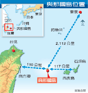 與那國島上標示與臺灣花蓮距離僅一百十一公里。圖片來源:中國新聞網