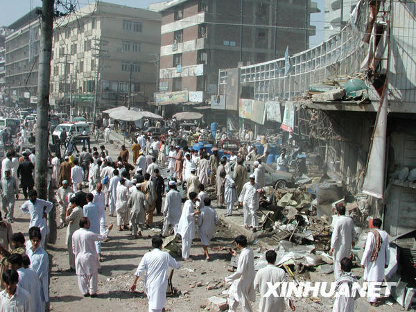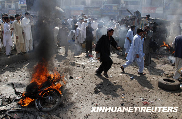 10月9日,巴基斯坦西北邊境省首府白沙瓦市市民在爆炸現(xiàn)場(chǎng)圍觀。新華社發(fā)