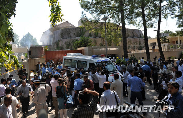 10月5日,在巴基斯坦首都伊斯蘭堡,安全人員與醫(yī)護(hù)人員抵達(dá)發(fā)生爆炸現(xiàn)場(chǎng)。巴基斯坦警方稱,聯(lián)合國(guó)駐巴機(jī)構(gòu)位于巴首都伊斯蘭堡的辦公室附近當(dāng)天發(fā)生爆炸,造成1死5傷。新華社/法新