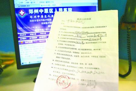 “打進(jìn)正規(guī)醫(yī)院靠的就是錢(qián)。”一名承包人透露了幕后操作方式,一是承包人主動(dòng)找到院長(zhǎng)承包科室,二是院長(zhǎng)讓人介紹他人來(lái)承包,院方則以“中原區(qū)人民醫(yī)院”或“中原人民醫(yī)院”的名義,與承包人簽訂合作協(xié)議。除書(shū)面協(xié)議外,醫(yī)院與承包人還有個(gè)不成文的約定,即承包方式是醫(yī)院出牌子,承包人投資,用的藥可自制,也可自己批發(fā)自己銷(xiāo)售,價(jià)格自定,科室的坐診人員院方也不干涉。承包人除每月向院方足額交納管理費(fèi)外,月結(jié)算時(shí)雙方再按比例分成,即院方扣除藥費(fèi)的20%、治療費(fèi)的25%,上述費(fèi)用都不開(kāi)票,一到月底院方就將科室的門(mén)診收費(fèi)在電腦中刪除了。