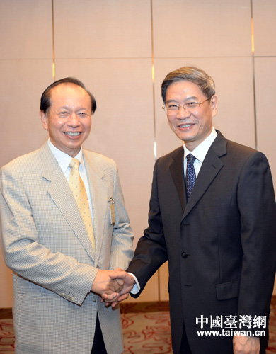 中共中央臺辦、國務院臺辦主任張志軍近日在中山市會見了前來出席第二屆海峽兩岸中山論壇的中國國民黨副主席蔣孝嚴。(中國臺灣網發)