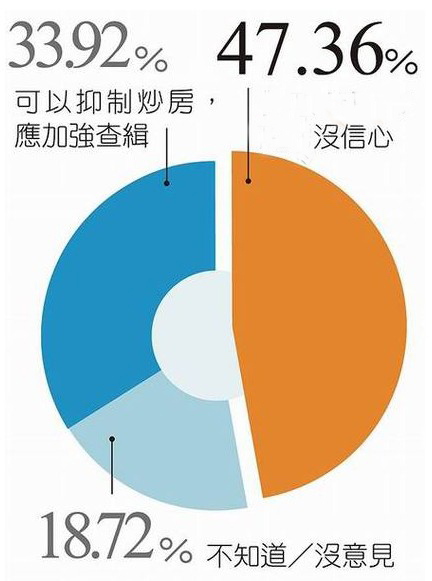 但據臺媒一項最新民調結果顯示,有近5成民眾對臺當局“財政部”取締炒房之舉沒信心。