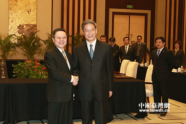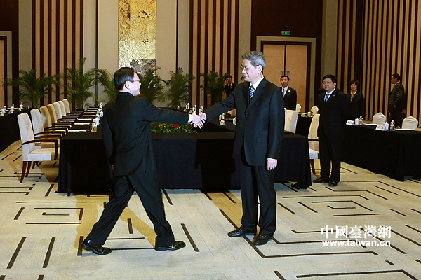 國臺辦主任張志軍2月11日下午在南京與臺灣方面陸委會負責人王郁琦舉行雙方兩岸事務主管部門負責人首次正式會面。(中國臺灣網 田云鵬 攝)