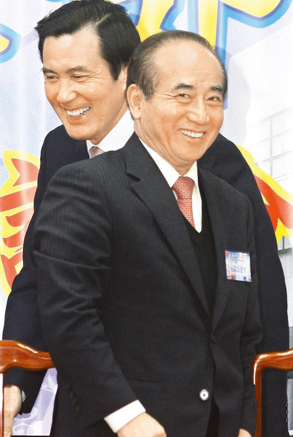 國民黨20日舉行立法行政議事運作研討會,馬英九(后)與王金平(前)互動熱烈。王隨后在參加臺聯黨活動時痛批國民黨人才斷層問題。(來源:臺灣《中國時報》