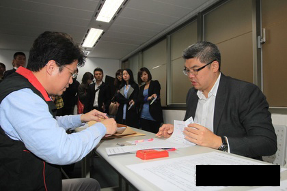 連勝文今早9點(diǎn)50就到國民黨臺(tái)北市黨部,但市黨部堅(jiān)持10點(diǎn)才可進(jìn)入領(lǐng)表,他只好在辦公室和黨部同仁聊天,怎知臺(tái)北市議員鐘小平后發(fā)先至,趁連在寒暄時(shí),搶得頭香,第一個(gè)領(lǐng)表。(中國臺(tái)灣網(wǎng) 朱煉)
