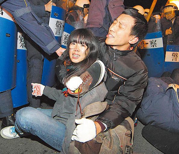 警方以警棍、盾牌強制驅離下,民眾頭破血流。來自臺媒