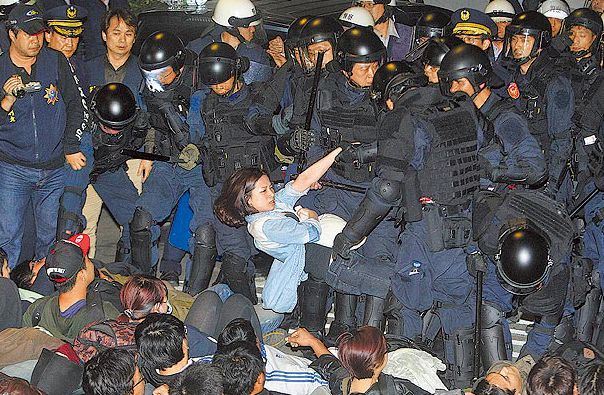 警方于執行清場,將靜坐民眾強制抬離。來自臺媒
