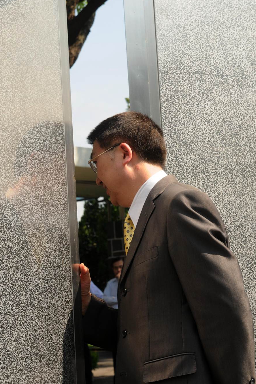 民進黨“立法院”黨團總召柯建銘(左)搭車進入王金平宅院。臺灣“中時即時”圖