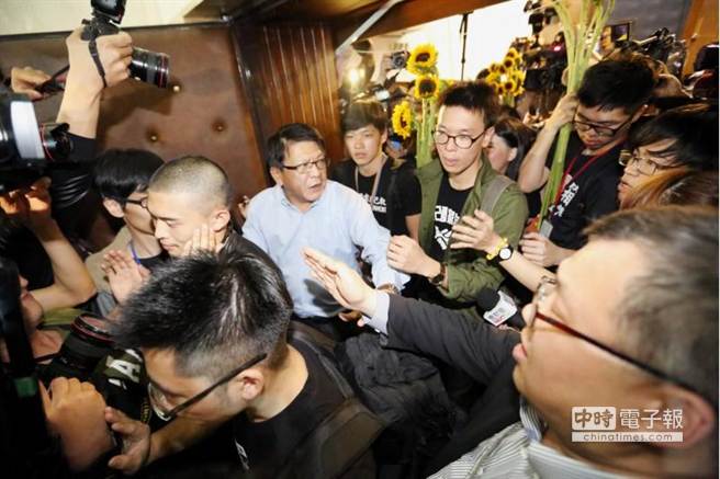 占領“立院”學生將議事槌歸還“國會”。 (圖片來自臺媒)