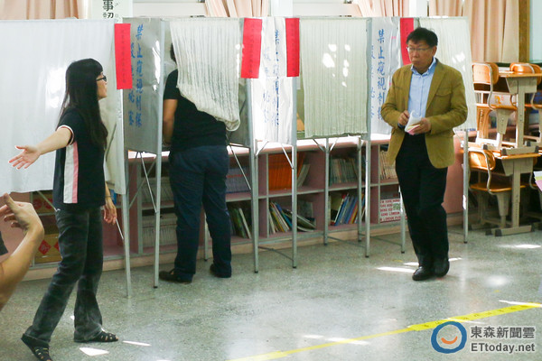 現任臺北市長柯文哲去年11月29日赴投開票所投票。(圖片來源:臺灣“東森新聞云”)