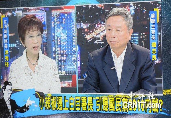 “立法副院長(zhǎng)”洪秀柱與前“衛(wèi)生署長(zhǎng)”楊志良27日一起接受媒體人趙少康《少康戰(zhàn)情室》節(jié)目專訪,在一個(gè)小時(shí)的節(jié)目里完全沒(méi)有戰(zhàn)火,只有互相吹捧,洪秀柱在節(jié)目里還拿了三本楊志良的書(shū)說(shuō)認(rèn)同楊的理念,如果當(dāng)選“總統(tǒng)”就會(huì)為請(qǐng)楊擔(dān)任“行政院長(zhǎng)”。