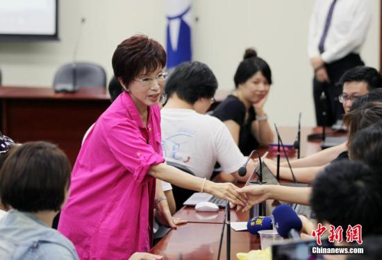 圖為洪秀柱在民調揭曉后與媒體及支持者見面。黃少華 攝