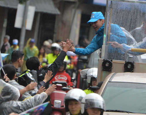 朱立倫在新北冒雨掃街,支持者熱烈回應。(資料圖取自臺媒)