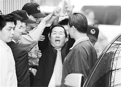 陳水扁當年走出“特偵組”,大聲喊冤。 (資料圖片)