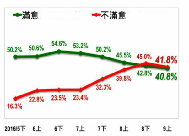 “臺灣指標民調”關于蔡英文施政滿意度與不滿意度的數據呈現。(圖片取自臺媒)