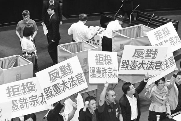 國(guó)民黨“立委”25日在“立法院”以拒投表達(dá)抗議。