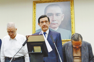 2014年臺灣“九合一”選舉國民黨大敗后不久,馬英九辭去國民黨黨主席職務。(臺媒圖)
