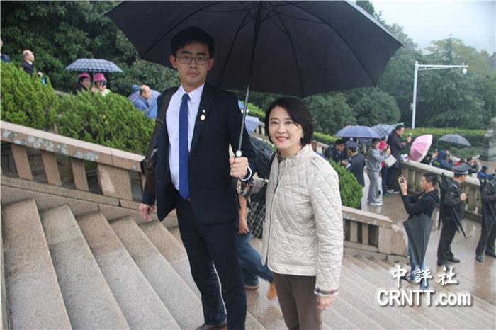 中評社記者向王鴻薇問道,此次跟隨柱柱姐來中山陵有何不同感受,王鴻薇表示,這并不是第一次來中山陵拜謁,但此次與洪主席來到中山陵有特別感受。 在王鴻薇進入祭殿后不久,洪秀柱一行隨后進入祭殿獻花并發表祭文,祭文由王鴻薇念誦。
