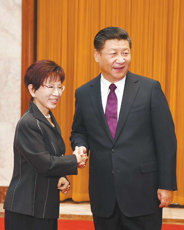 11月1日下午,中共中央總書記習近平在北京人民大會堂會見洪秀柱主席率領的中國國民黨大陸訪問團。