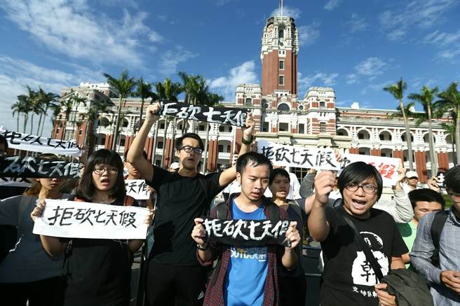 臺灣勞工團(tuán)體“工斗青年產(chǎn)業(yè)后備軍”表示,希望蔡英文可以撤回刪除法定假日7天案。如果未來仍要硬砍假,將會再有抗?fàn)幮袆印?/strong>(中國臺灣網(wǎng) 王思羽)