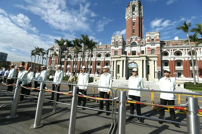 蔡辦前架起欄架,阻隔抗議群眾。(圖片來源:臺灣“中時(shí)電子報(bào)”)