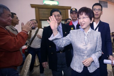 4日上午,中國國民黨主席洪秀柱出席在臺軍軍官俱樂部舉行的臺灣裝甲兵73周年隊慶暨會員大會。(圖片來源:臺“中央社”)