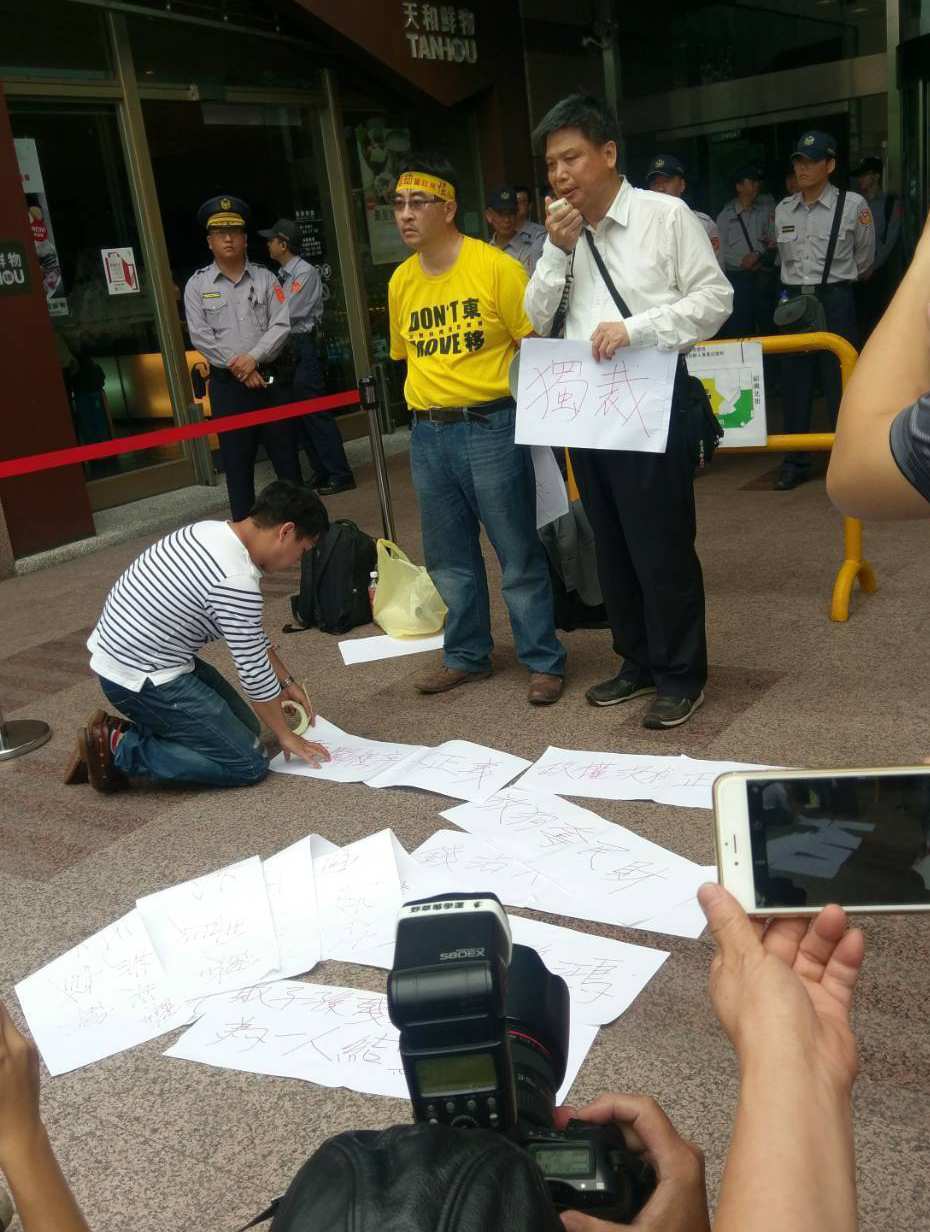 島內政治大學教授徐世榮赴民進黨中央黨部抗議。(圖片來源:臺灣《聯合報》)