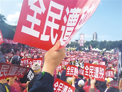 臺灣軍公教人員抗議民進黨強推“年金改革”。 本報記者 吳亞明攝