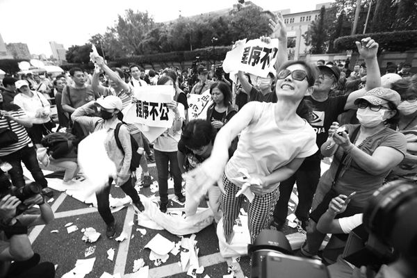 24日,反同團體在得知“釋憲”結果后怒撕標語。