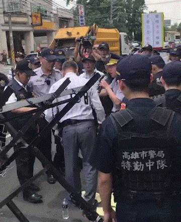 結(jié)束了“走后門(mén)”參拜,蔡英文下午出席高雄燕巢區(qū)“角宿天后宮”贈(zèng)匾儀式,抗議群眾依舊如影隨形。據(jù)報(bào)道,現(xiàn)場(chǎng)有200多人與維安警力對(duì)峙。蔡英文于下午1點(diǎn)55分左右抵達(dá),車(chē)隊(duì)到達(dá)時(shí),在門(mén)口守候的抗議團(tuán)體開(kāi)始鼓動(dòng),隔著拒馬與警方嗆聲,有民眾甚至丟擲木炭、煙霧彈,現(xiàn)場(chǎng)冒出陣陣濃煙,警方立即將其中3名帶頭者帶至派出所盤(pán)查身份。