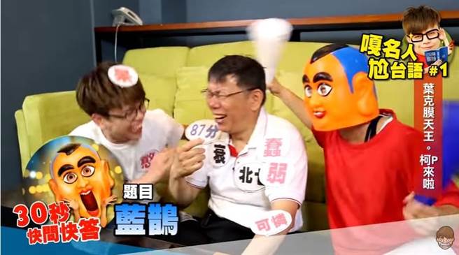 柯P被問藍(lán)鵲臺灣話怎么說狂笑。(圖片截取YouTube)