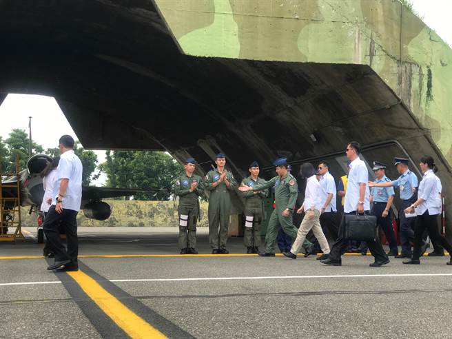 圖為蔡英文視察臺(tái)南空軍基地。(臺(tái)灣“中時(shí)”報(bào)系資料圖)