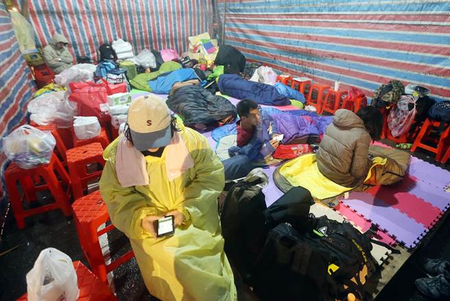 臺(tái)灣勞團(tuán)發(fā)動(dòng)夜宿“立法院”行動(dòng),勞團(tuán)在寒流中于“立法院”外夜宿。(圖片來(lái)源:臺(tái)灣《中時(shí)電子報(bào)》)