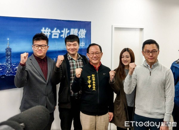 丁守中與他的發言人群。(圖片來源:臺灣“東森新聞云”)