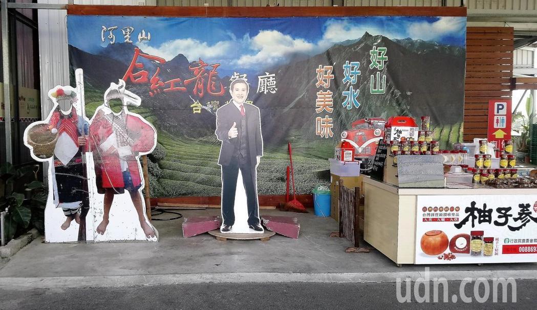 阿里山公路旁販賣茶葉、特產的商店,會設立馬英九立牌供游客拍照留念,因陸客驟減,許多店面經常只剩馬英九立牌空立門前。(圖片來源:臺灣《聯合報》)