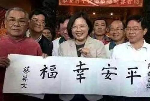 蔡英文書法“平安幸福”曾被不少島內(nèi)網(wǎng)友嘲笑像小學(xué)生字體。(臺媒圖)