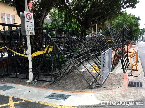 臺(tái)“立法院”正門(mén)堆滿(mǎn)層層拒馬。(圖片來(lái)源:臺(tái)灣“東森新聞云”)
