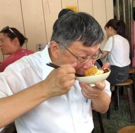 柯文哲大吃鹵肉飯。(圖片取自臺媒)