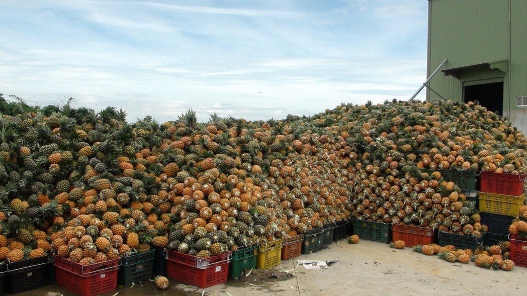 島內合作社內堆積了上百噸鳳梨無處可送。(圖片來源:臺灣《聯合報》)