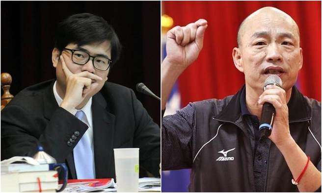 民進(jìn)黨高雄市長參選人陳其邁(左)、國民黨高雄市長參選人韓國瑜(右)