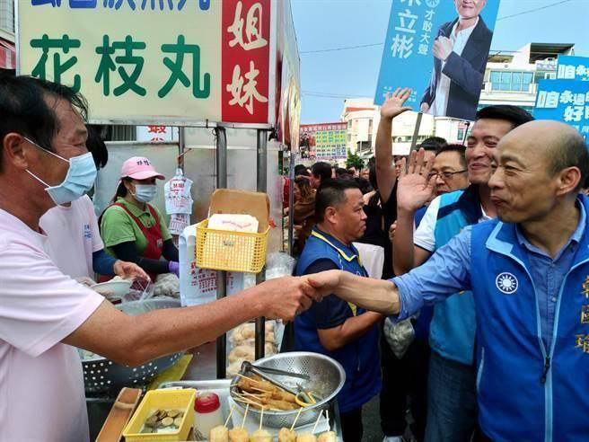 韓國瑜走訪攤販爭取支持。(圖片來源:臺灣“中時電子報”)