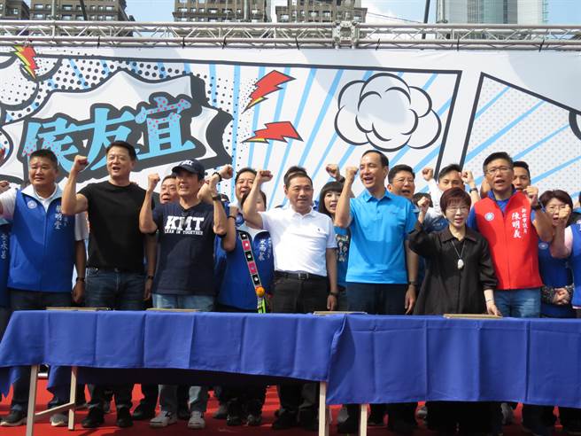 馬英九、周錫瑋、洪秀柱、朱立倫、侯友宜等先后按下手印,象征團結(jié)、一棒接一棒,現(xiàn)場“凍蒜(當選)聲”此起彼落。