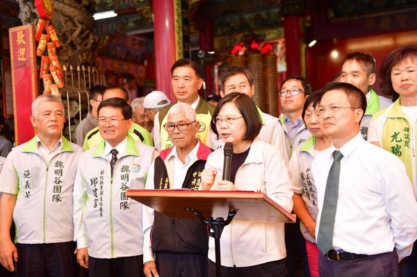 蔡英文日前為彰化縣長魏明谷站臺。(圖片來源:臺灣“東森新聞云”)